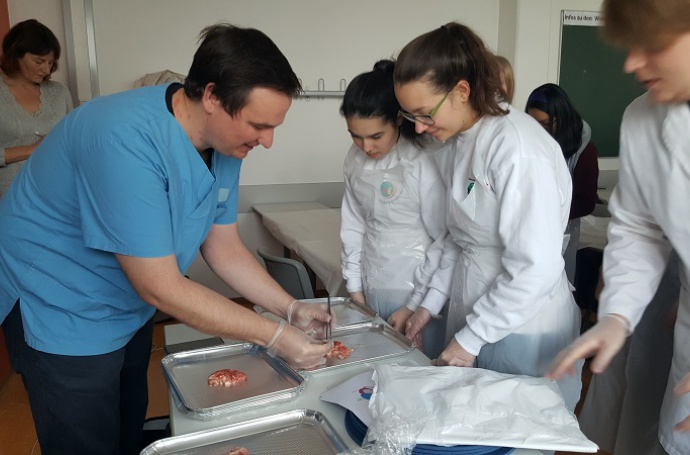 Von Brüchen bis Vergiftungen konnte auch dieses Mal den Schulsanitätern eine Bandbreite an Erste-Hilfe-Know-How erklärt, gezeigt und vorgemimt werden. Wie behandelt man eine Kopfplatzwunde? Was tut man, wenn man jemanden bewusstlos auffindet? Und wie bekommt man diese Person dann in den Rettungswagen? Unser Team scheute daher keine Mühen den neugierigen Nachwuchssanitätern die wichtigsten Inhalte der Ersten Hilfe zu vermitteln. Neben KTW/RTW-Besichtigung und Fallbeispielübungen war ein weiteres Highlight das Sezieren eines echten Gehirns - natürlich eines vom Schwein ;)